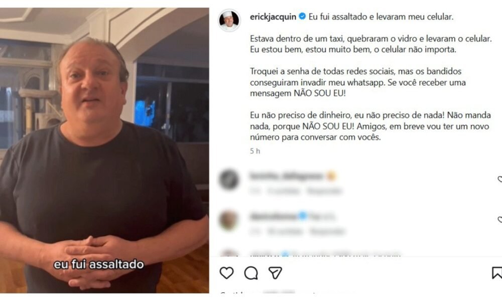 Chef alerta para golpe comum em táxis, após ter telefone levado por ladrão O chef francês Erick Jacquin relatou nas redes sociais que foi vítima de...