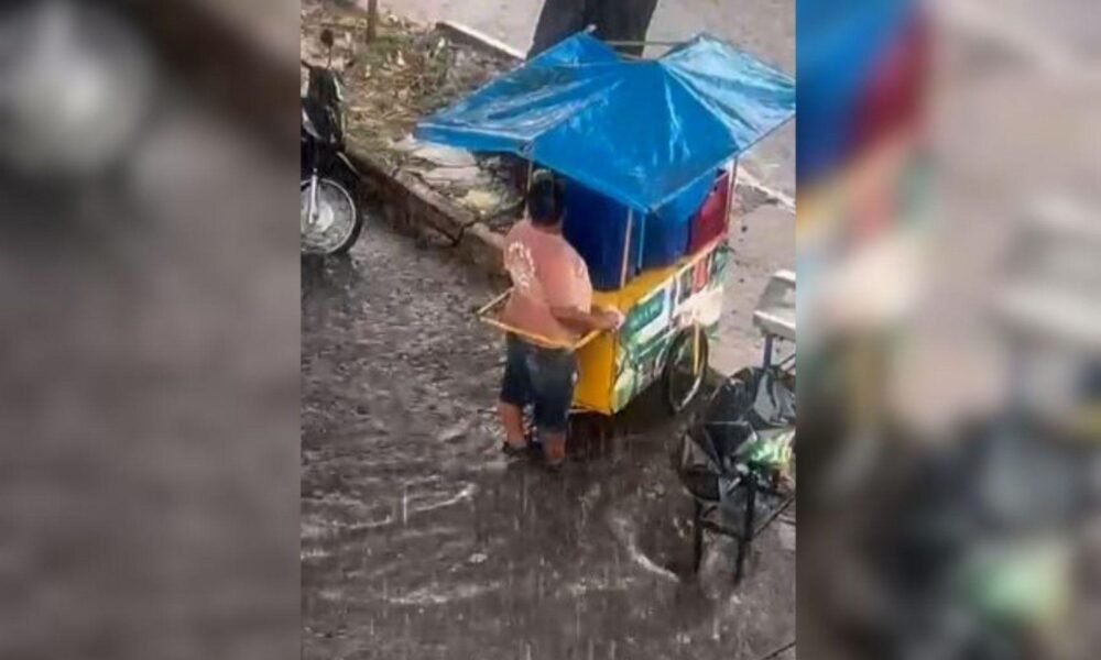 Na última quarta-feira (25), um vídeo que mostra um ambulante lutando para proteger seu carrinho de água de coco em meio a uma forte chuva no...