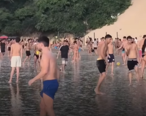A praia de Ponta Negra, em Natal, tem registrado um aumento no número de pessoas praticando esportes como futevôlei e altinha, inclusive em dias de semana.
